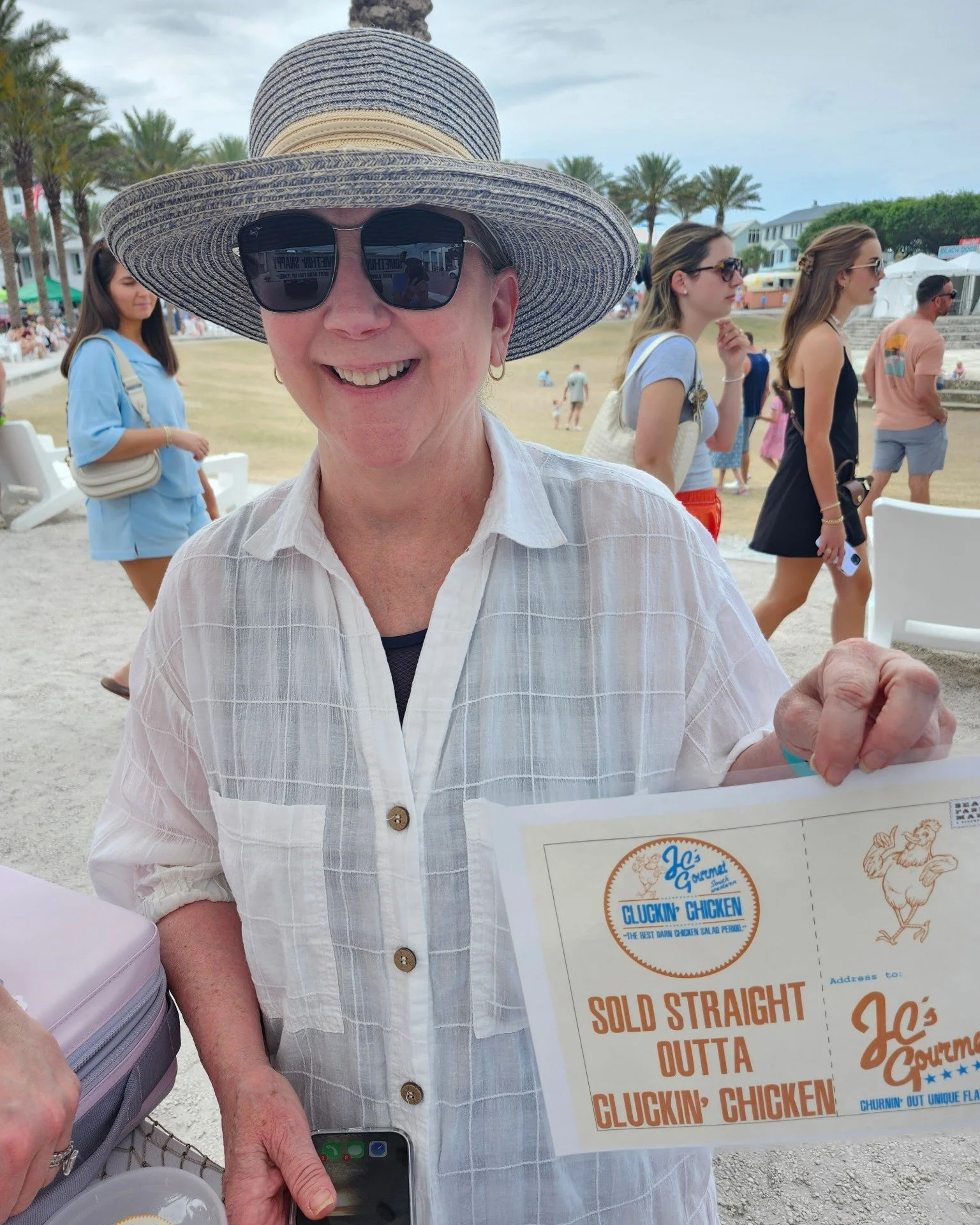 Emily (L) and her mother, Lisa (R), at the Seaside Farmers Market holding our “Sold Straight Outta Snappy Dip” sign.